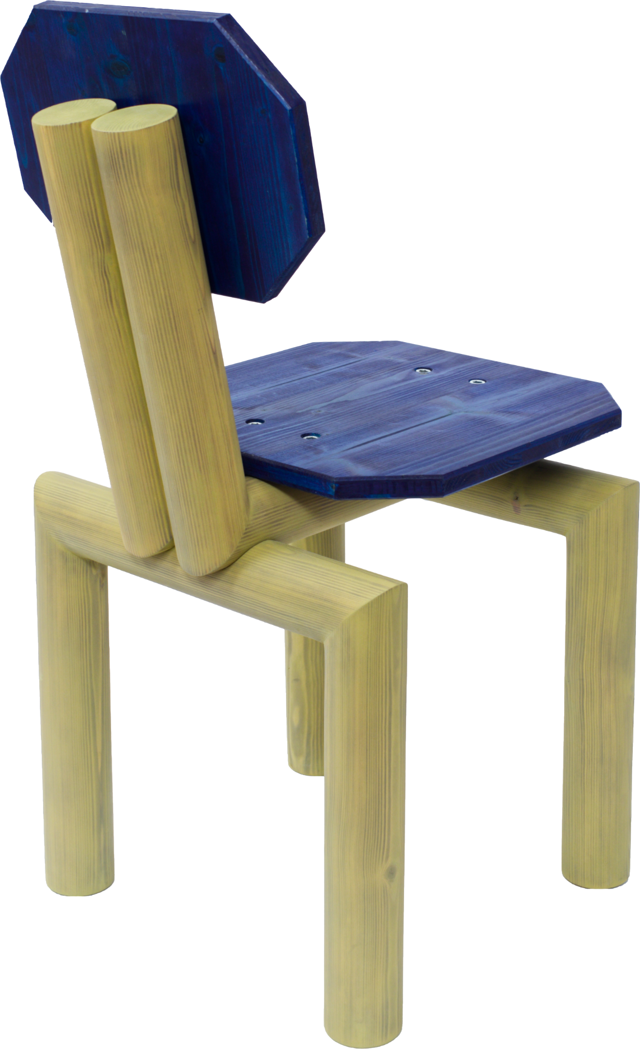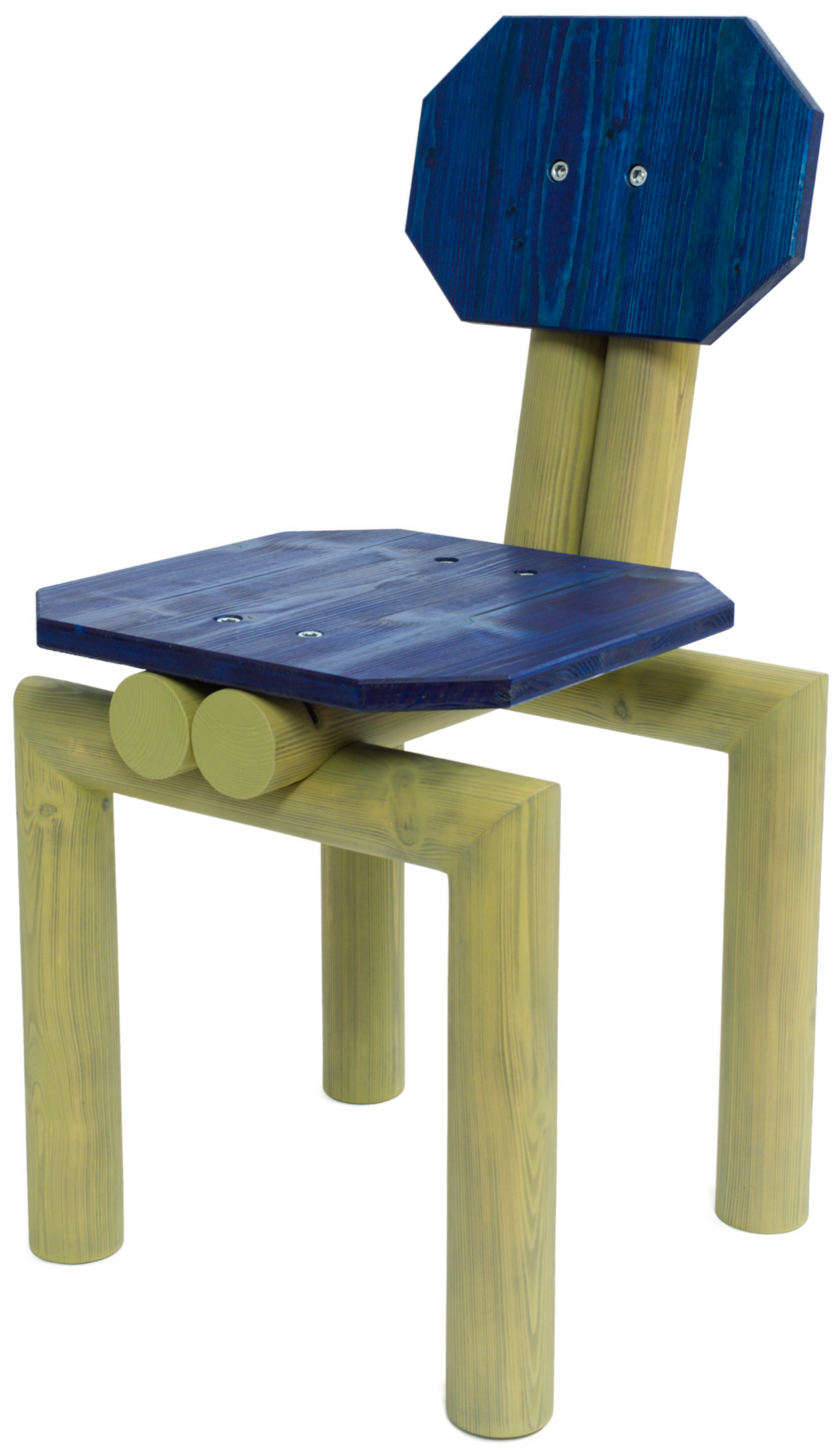 Stammie is ontstaan uit een fascinatie voor primitieve houtbouw waarbij ronde boomstammen worden gebruikt. Deze lompe maar zeer solide bouwvorm is subtiel vertaald naar de stoel. Met oog voor detail is deze stoel een bijzonder object door de designtaal van het houten frame en de verfijnde houtnerf die tevoorschijn komt door de speelse afwerking met kleur.